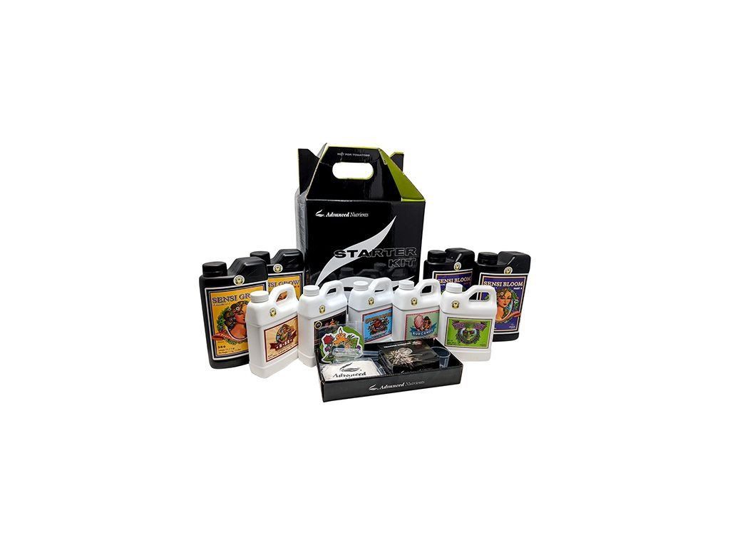 Startovací sada hnojiv a doplňků Advanced Nutrients Starter Kit. Základní výživa AN pH Perfect Sensi Grow/Bloom A+B, Voodoo Juice, Big Bud, Overdrive, Bud Candy, B-52. Starter Kit obsahuje lupu, odměrku, dávkování, 2 pipety.