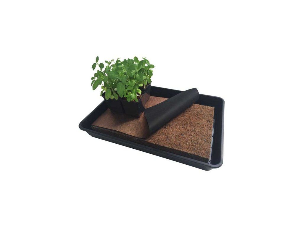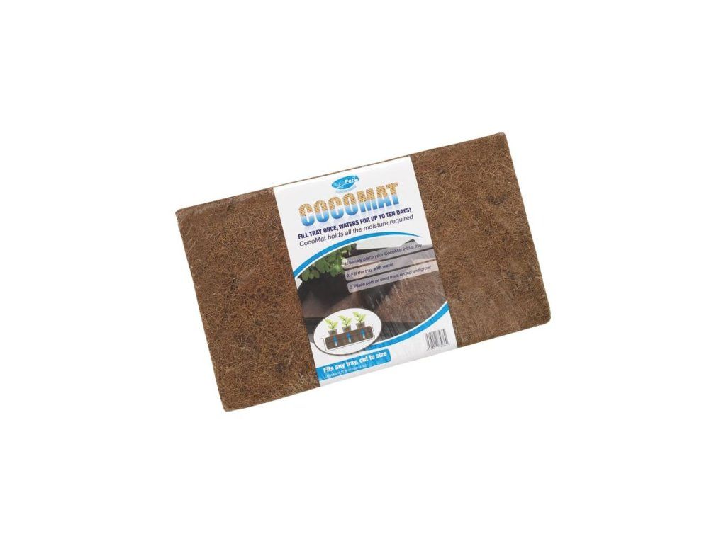 Rohož CocoMat o rozměrech 51 cm x 30 cm x 3 cm vyrobená z kokosových vláken a latexu s fólií Root Control Sheet připravenou na míru. CocoMat zadržuje veškerou potřebnou vlhkost. Stačí jednou naplnit zásobník a CocoMat bude rostliny zavlažovat až deset dní. Podložka CocoMat řídí zavlažování tím, že zadržuje a postupně odvádí vodu k rostlinám kapilárním působením. Jednoduše umístěte podložku CocoMat do misky, naplňte ji vodou, položte na ni zásobník se semeny a pěstujte!