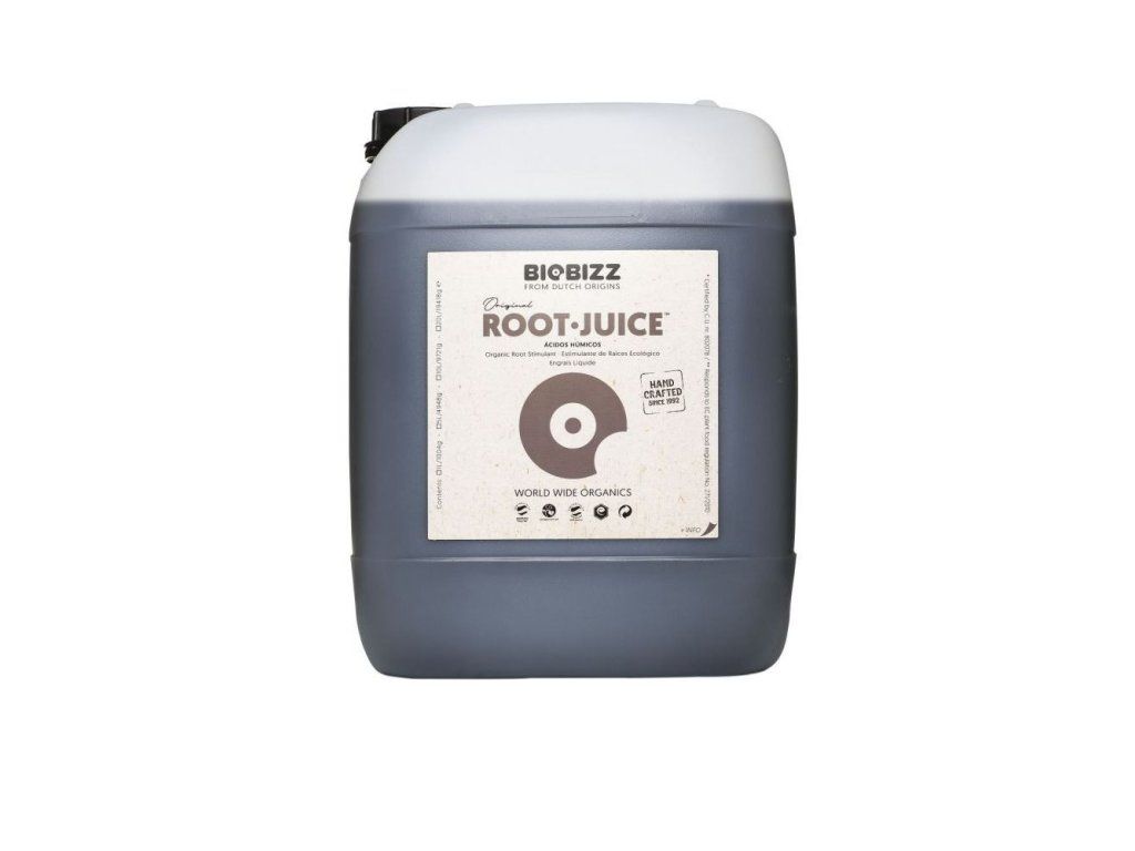 Root-Juice je harmonicky vyvážená směs prvotřídních huminových a fulvových kyselin s mořskými řasami. Root-Juice je kořenový stimulátor vyvinutý speciálně pro dynamický růst kořenů a podporu kořenového systému organickou cestou. Výsledkem je prudký vzrůst a lepší výnos díky schopnosti rostliny zrychlit absorpci živin. Je vhodný pro hydroponicky či v půdním nebo kokosovém substrátu pěstované rostliny.