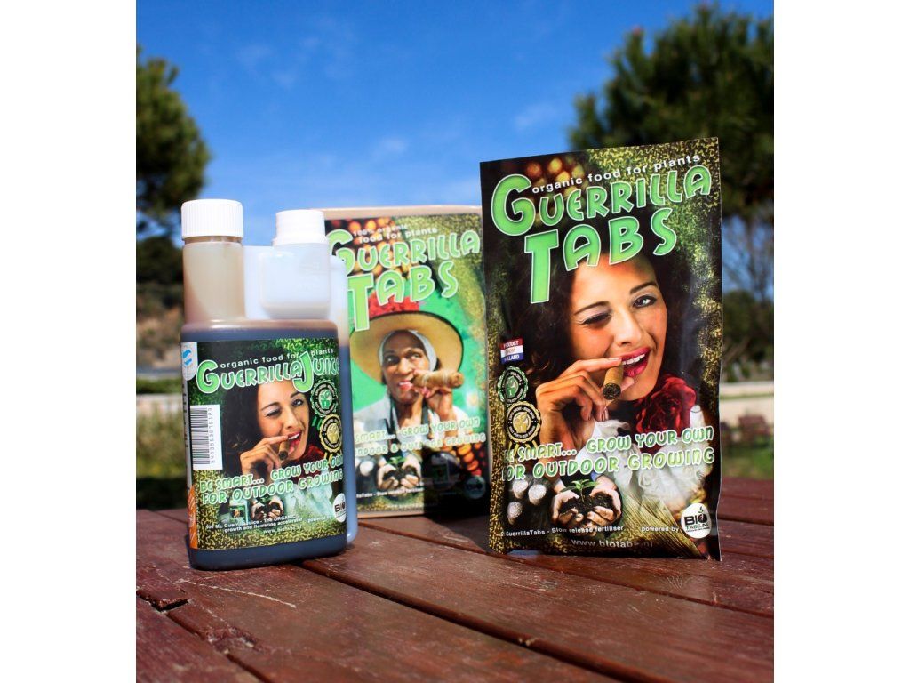 Jednoduchá sada organické výživy pro guerilla pěstování 5 rostlin. Box obsahuje tablety a Guerilla Juice v jednom balení.