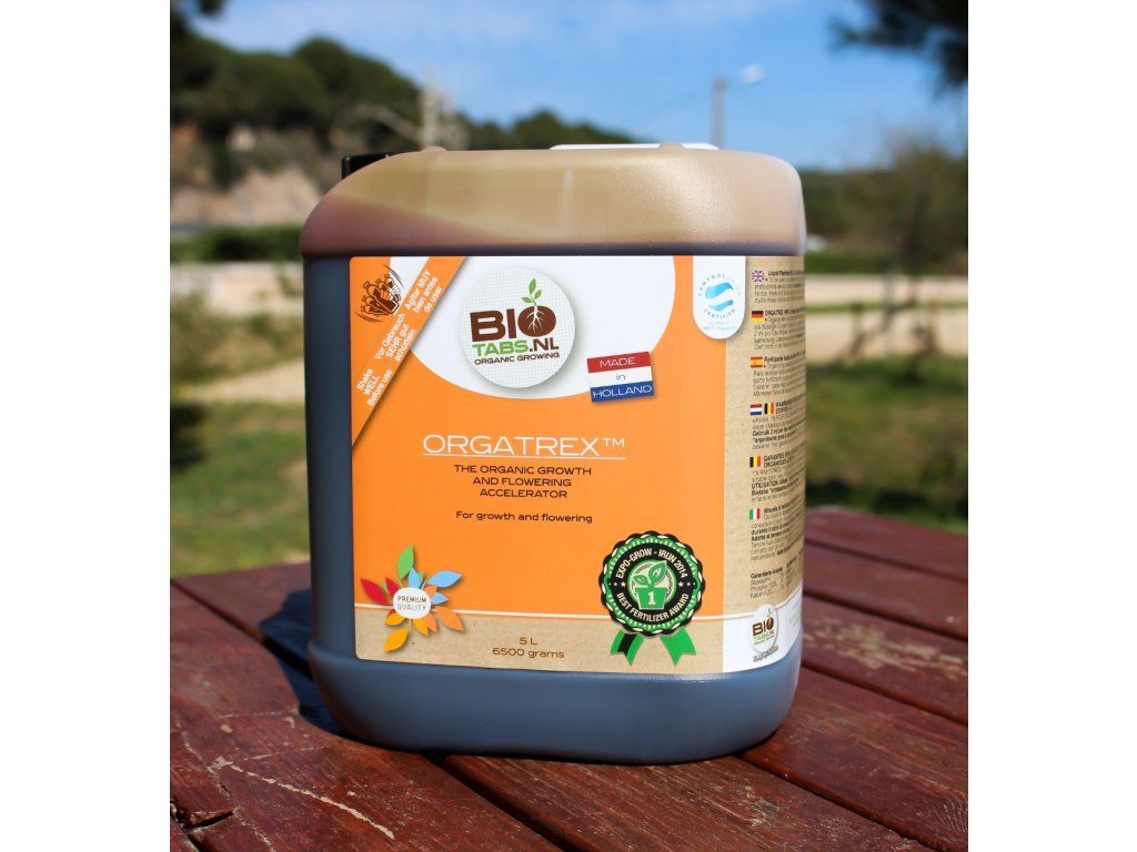 Biotabs Orgatrex je tekuté 100% organické a biologické hnojivo s vysokým obsahem cukrů na růst a květ.