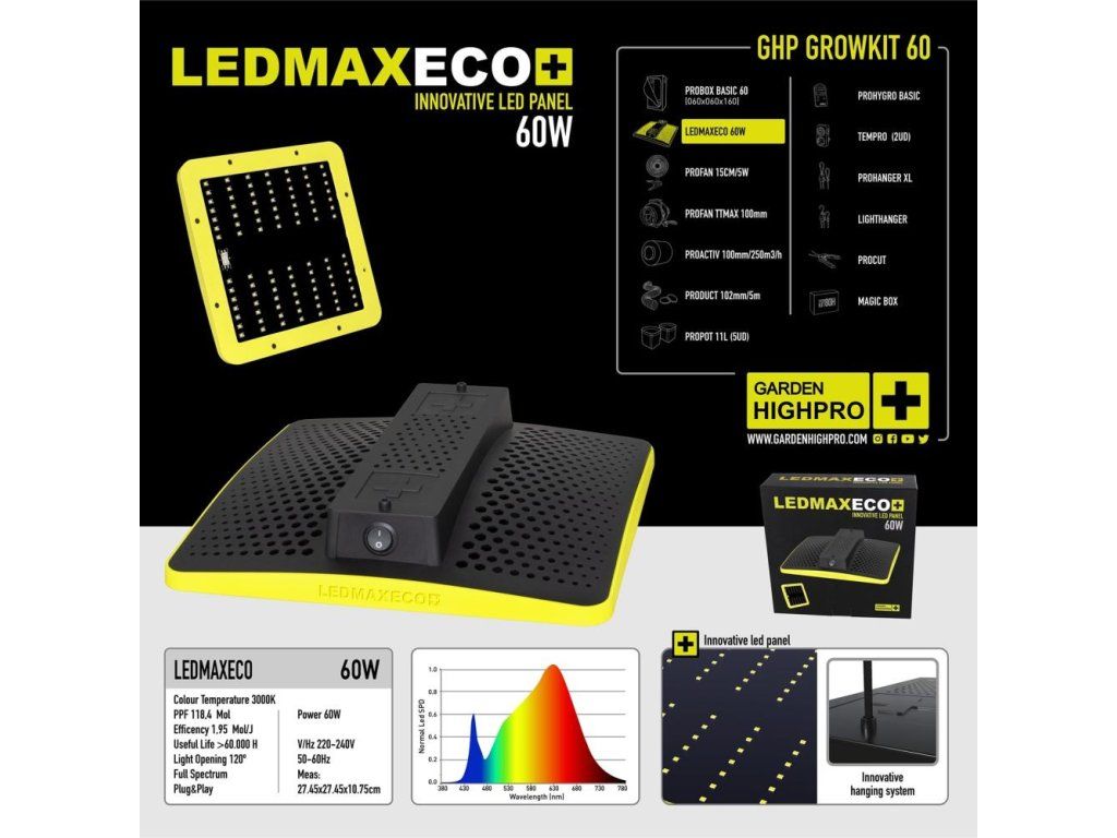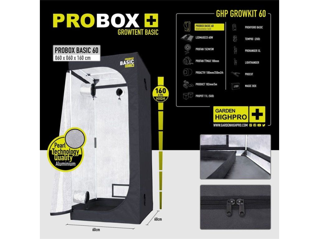 Obsah sady: PROBOX BASIC pěstební stan: Kompaktní a robustní stan o rozměrech 60x60x160 cm je ideální pro maximální využití prostoru a optimalizaci růstu vašich rostlin v kontrolovaném prostředí. LEDMAXECO 60W LED osvětlení: Svítí efektivně a s nízkou spotřebou, napodobuje sluneční spektrum a zajišťuje optimální fotosyntézu bez nadměrného tepla tradičních žárovek. Účinné větrání: Součástí balení je 15cm 5W ventilátor PROFAN a 100mm odsavač PROFAN TTMAX pro udržení ideálního proudění vzduchu a stabilních podmínek. Uhlíkový filtr PROACTIV: S výkonem 250 m3/h odstraňuje pachy a čistí vzduch, čímž vytváří svěží a čisté prostředí pro vaše rostliny. Nezbytné příslušenství: Od pěti 11litrových geotextilních květináčů PROPOT až po termohygrometr PROHYGRO BASIC pro sledování teploty a vlhkosti - vše potřebné pro správu vašich plodin je součástí balení. Časovače a podpůrné systémy: Dva časovače TEMPRO a kladky PROHANGER XL usnadňují programování světelných cyklů a snadné nastavení výšky světel. Přesné nářadí: Nůžky PROCUT pro údržbu a závěsy LIGHTHANGER pro jednu snadnou a bezpečnou instalaci. Speciální bonus: Součástí každé sady je zdarma MAGIC BOX, který obsahuje brusku, průvodce podrobnou kultivací a samolepku pro personalizaci vašeho prostoru.