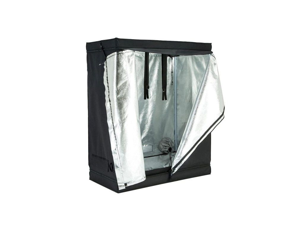 Malý pěstební stan s tkaninou Mylar 600D, 16mm kovovými tyčemi s práškovým nástřikem a plastovými rohy má rozměry 60x60x120 cm. Nosnost konstrukce cca 30 kg. Včetně otvorů pro kabeláž (průměr 10 cm) a ventilaci (průměr 20 a 25 cm).