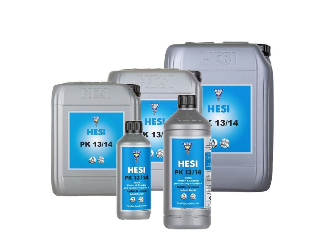 Organominerální hnojivo Hesi PK 13/14 je vhodné pro všechny typy pěstebních médií. Zajišťuje rychlé a přímé vstřebávání draslíku a fosforu rostlinou, je určeno pro květovou fázi. Květy jsou s ním kompaktnější. Nejlepší výsledky vykazuje při kombinaci s Hesi Hydro Bloom nebo Hesi Coco. Lze kombinovat s ostatními doplňky Hesi.