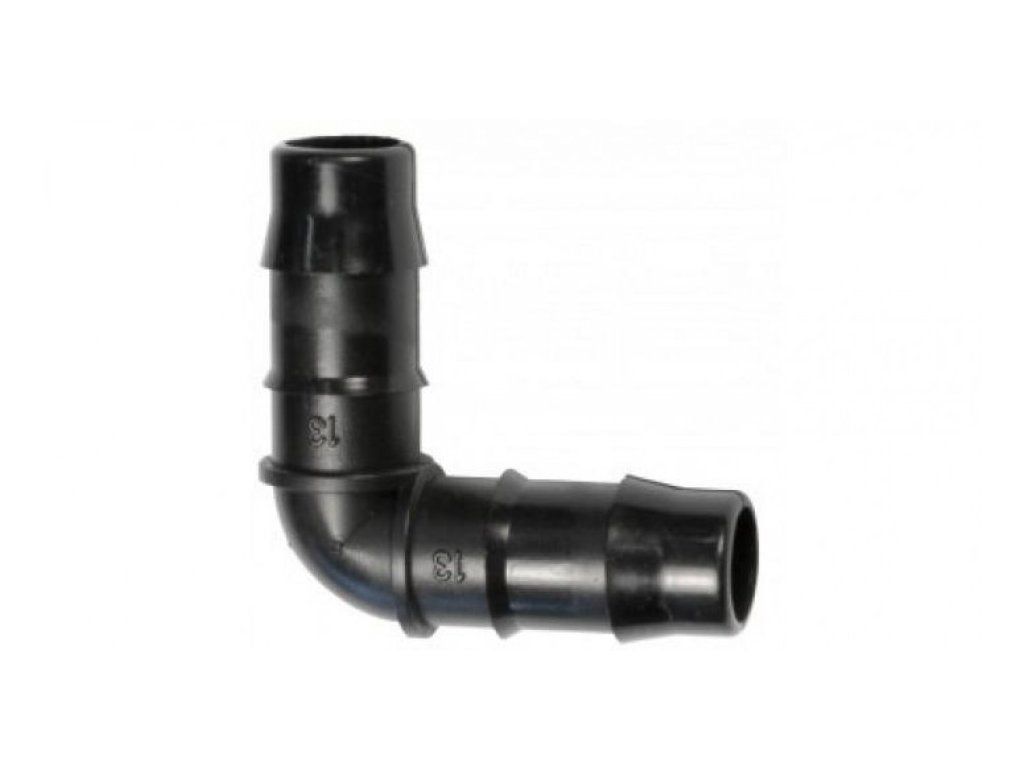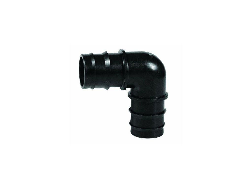 Plastové koleno (L spojka) pro zavlažovací systémy Irritec o průměru 25 mm.