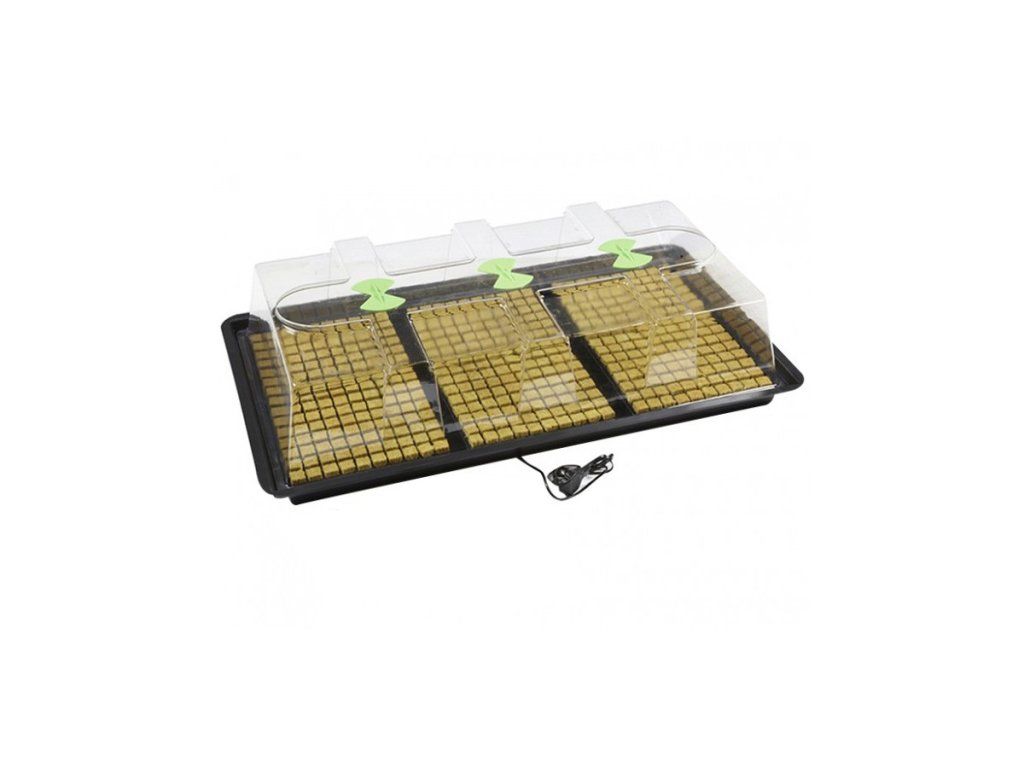 Velký vyhřívaný skleník X-Stream Heat L je vhodný pro rozmnožování a profesionální péči o malé rostliny. Tři pěstební plochy pojmou celkem 3x150 pěstebních kostiček z rockwoolu. Automatické vytápění zajistí sazenicím a řízkům dostatečný komfort v těch nejkritičtějších dnech. Vývoj rostlin lze kontrolovat přes 100% průhledný vrchní kryt s ventilačními klapkami.