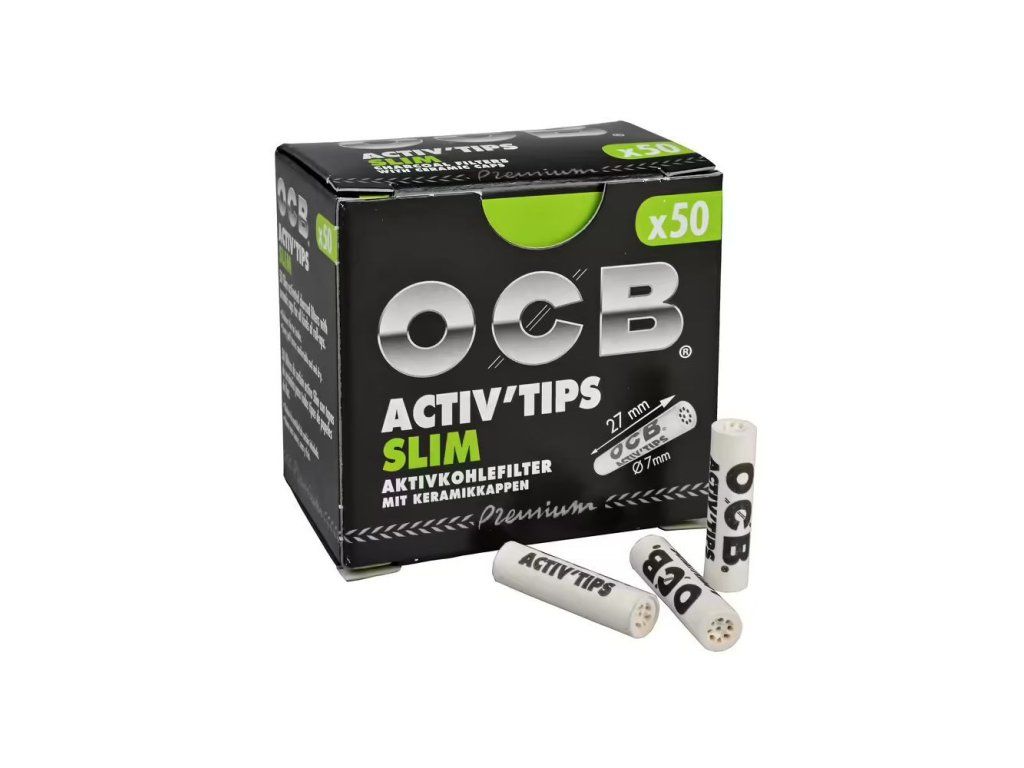 Cigaretové filtry OCB Activ Tips Slim s aktivním uhlím a keramickým oboustranným zakončením. Uhlíkové filtry snižují množství přijímaného dehtu, neovlivňují chuť a dopřejí Vám suché a chladné kouření. Průměr filtru 7mm, délka 27mm. Cena uvedena za 10 balení po 50 ks filtrů.