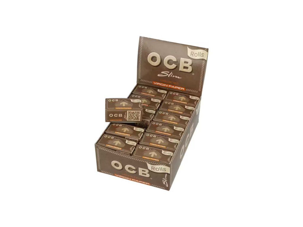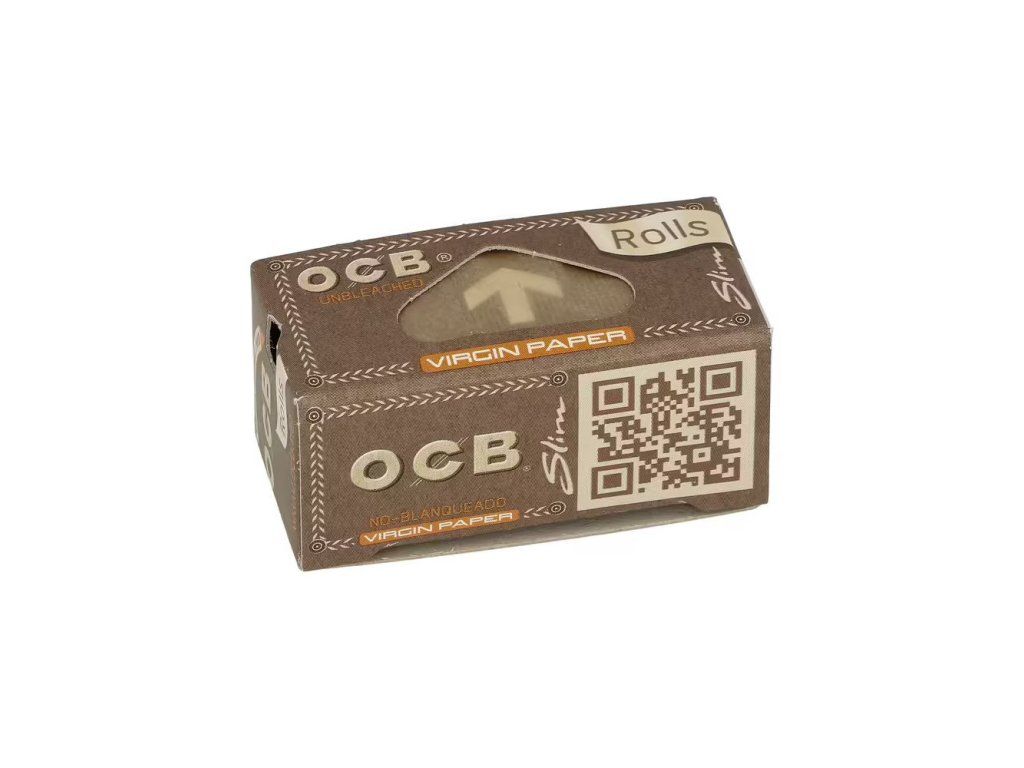 Cigaretové papírky OCB Rolls Slim Virgin. Délka 4 m, šířka 44 mm. Papírky jsou vyrobené z ultratenkého neběleného papíru s přirozenou hnědou barvou. V boxu 24 ks.