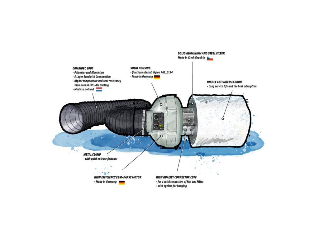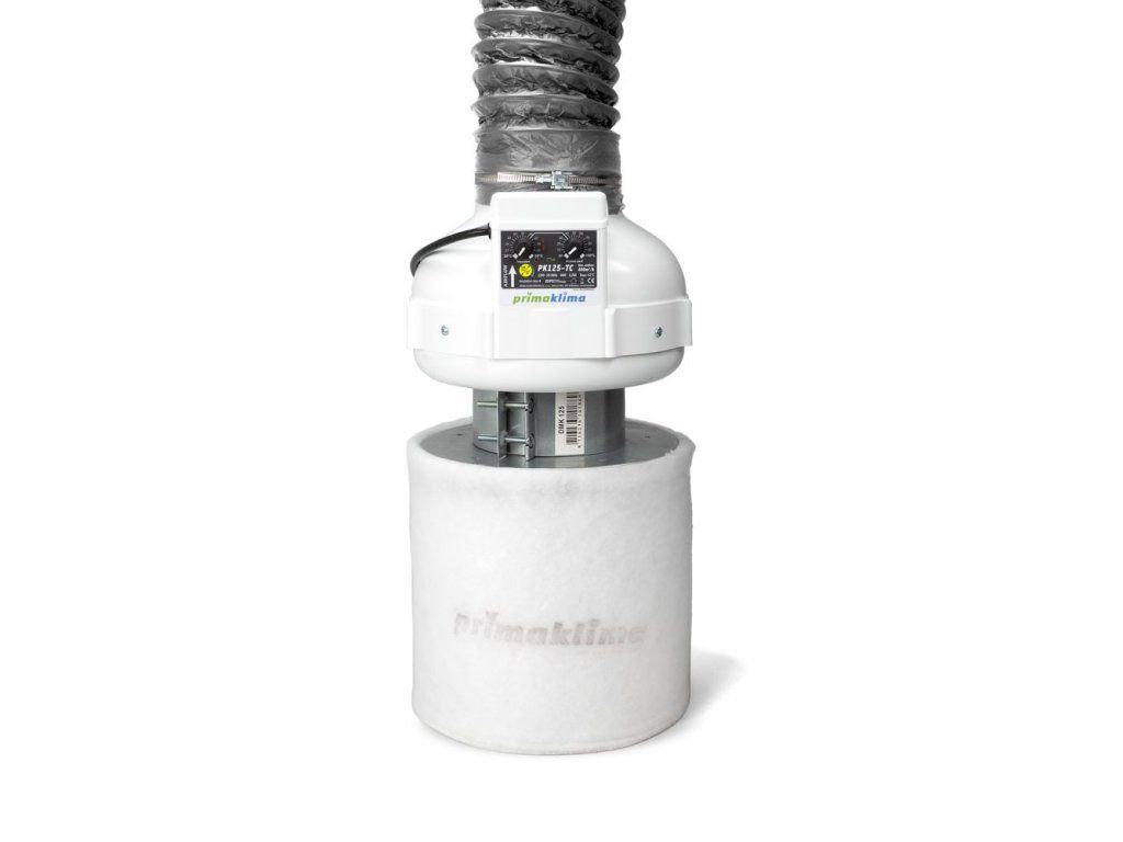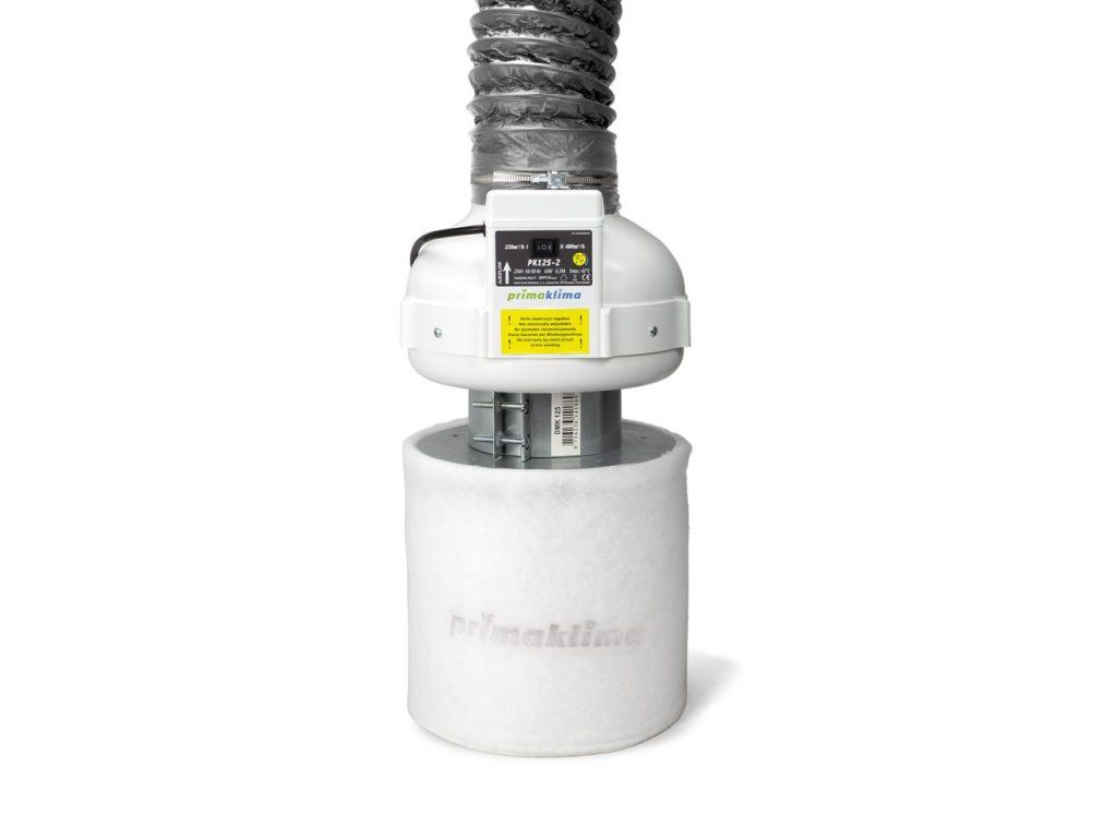 Ventilační set Prima Klima 125 mm. Prima Klima ventilátor PK125-2 125 mm - 220/420 m3/h, 2-rychlostní + Filtr s aktivním uhlím K2601-flat-125, Eco Line, 125 mm, průtok vzduchu Opt. 360 m³/h, Max. 460 m³/h + další příslušenství.
