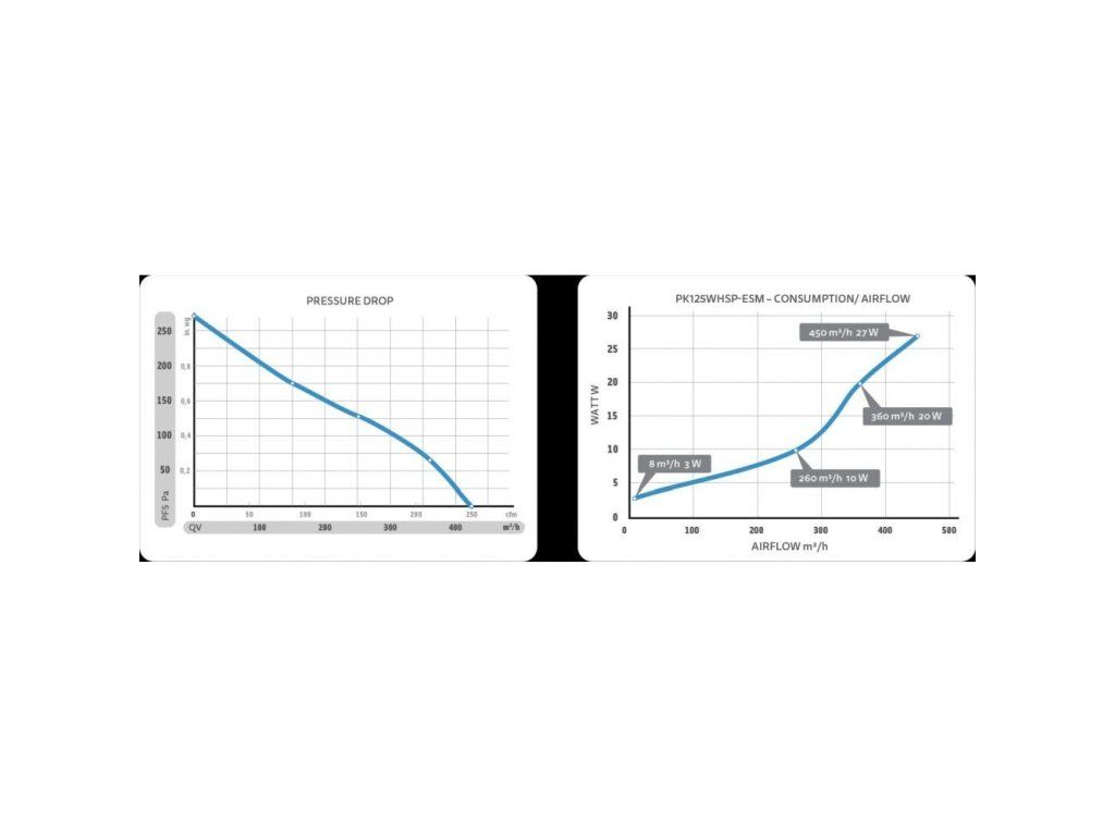 Ekonomický ventilátor Prima Klima Whisperblower s maximálním průtokem vzduchu 400 m3/h. Průměr 125 mm. Pozor, ventilátor Beepsblower není optimalizován pro co nejnižší hlučnost, ale spotřebu! Při nižších otáčkách vydává vysokofrekvenční zvuk a proto není vhodný pro uživatele vyžadující maximálně tichý chod ventilace.