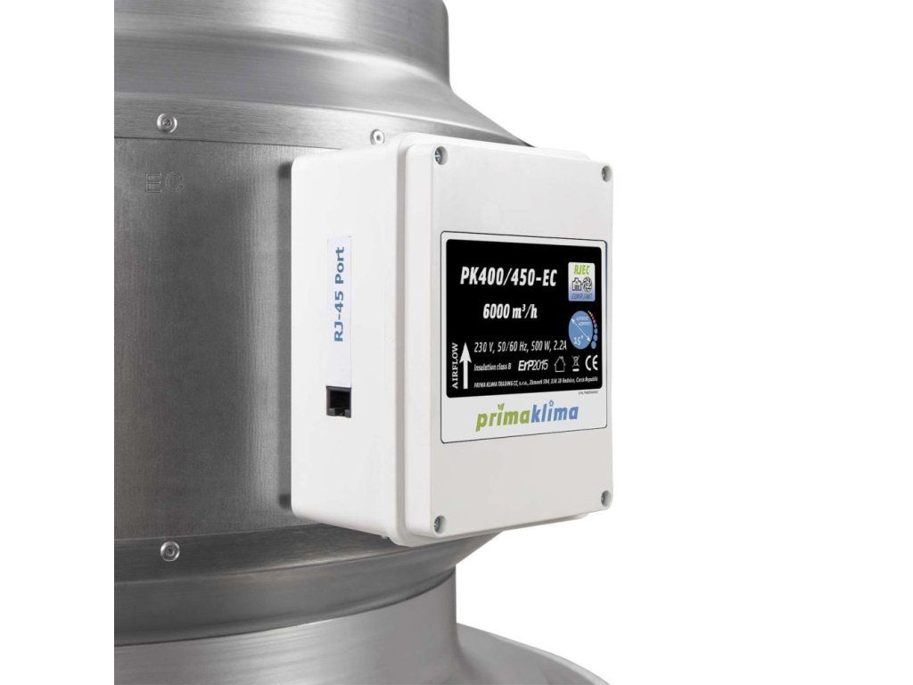 Primaklima BLUE LINE PK400/450-EC je vybaven vysoce účinným německým EC motorem ebmpapst s neuvěřitelným průtokem vzduchu až 6000 m³/h.