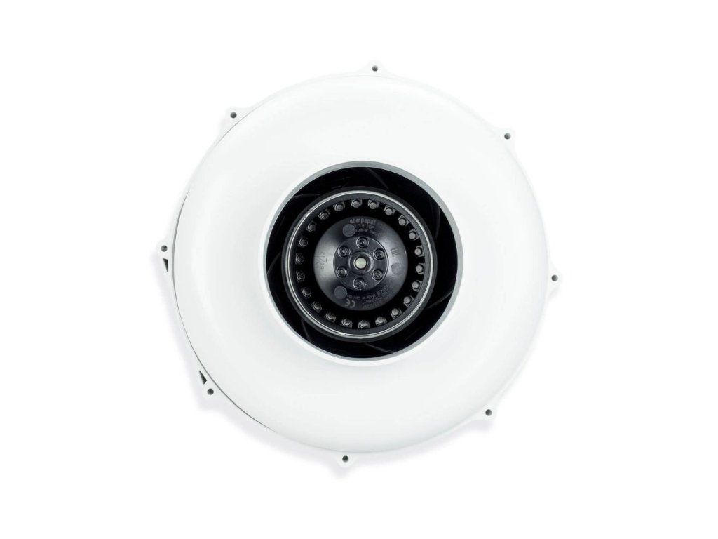 Vysoce účinný ventilátor do potrubí vybavený střídavým motorem ebm-papst s dozadu zahnutými lopatkami. Střídavý motor byl optimálně přizpůsoben konstrukci pláště. Kryt je celý vyroben z vysoce odolného polyamidu (nylonu) odolného proti nárazu a plameni. Bezúdržbová kuličková ložiska s dlouhou životností přispívají k mimořádně hladkému chodu motoru.