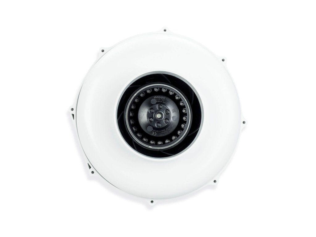 Teplotně řízený vysoce účinný ventilátor do potrubí vybavený střídavým motorem ebm-papst s dozadu zahnutými lopatkami. Ventilátor byl optimálně přizpůsoben krytu, který je vyroben z vysoce nárazuvzdorného, nehořlavého polyamidu (nylonu). Bezúdržbová kuličková ložiska s dlouhou životností přispívají k mimořádně hladkému chodu motoru.