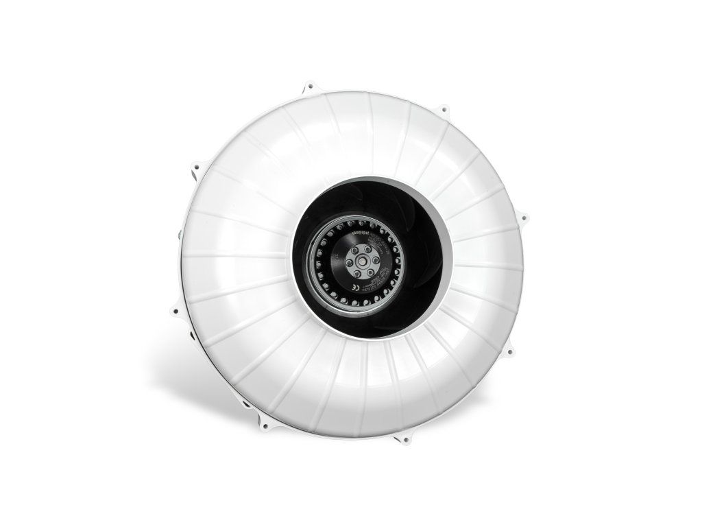 Dvourychlostní, vysoce účinný ventilátor do potrubí vybavený střídavým motorem ebm-papst s dozadu zahnutými lopatkami. Ventilátor byl optimálně přizpůsoben krytu, který je vyroben z vysoce nárazuvzdorného, nehořlavého polyamidu (nylonu). Bezúdržbová kuličková ložiska s dlouhou životností přispívají k mimořádně hladkému chodu motoru.