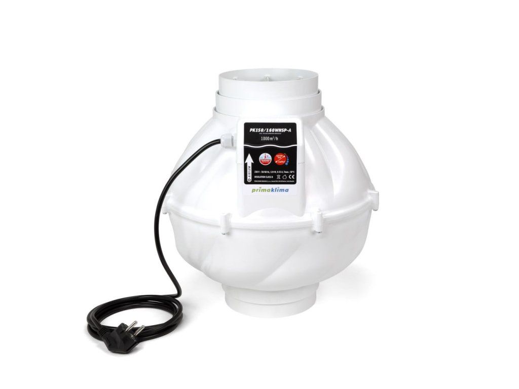 Ventilátor Prima Klima Whisperblower 150-160 mm - 1000 m3/h, 1-rychlostní. Dvě možnosti připojení.