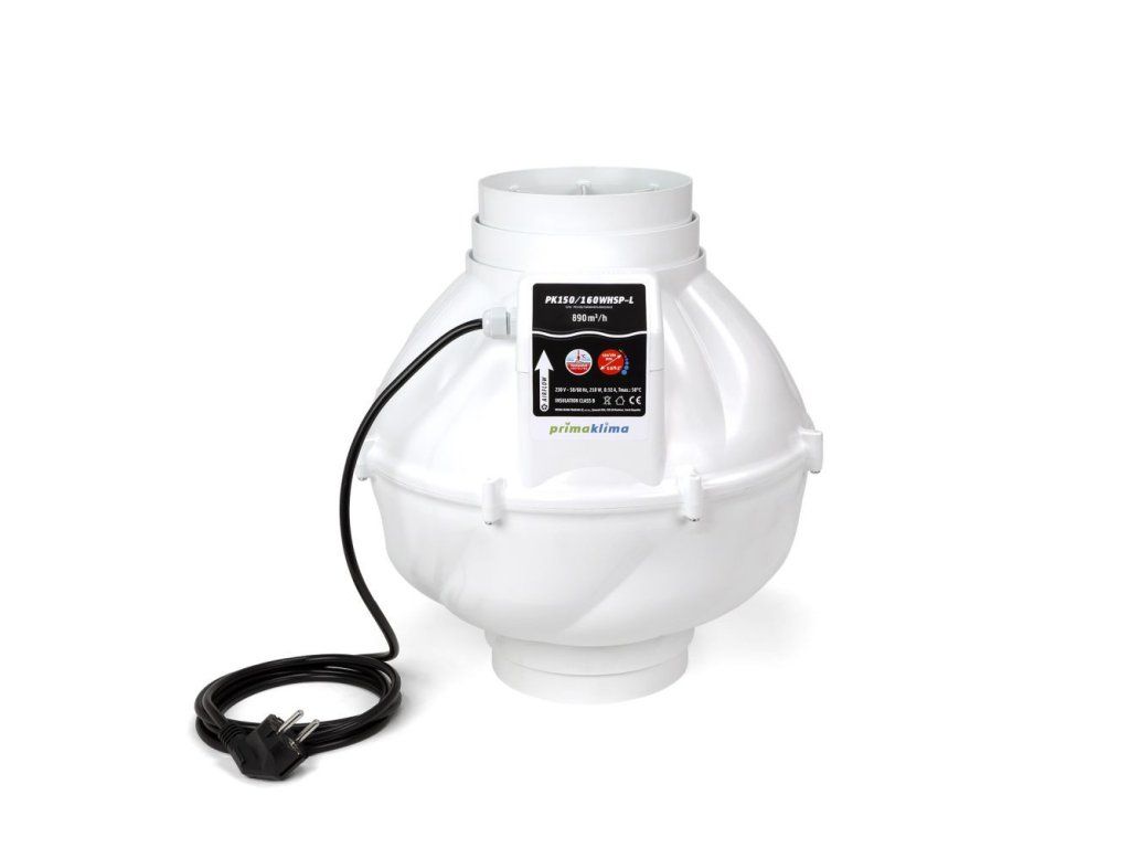 Ventilátor Prima Klima Whisperblower 150-160 mm - 1150 m3/h, 1-rychlostní. Dvě možnosti připojení.