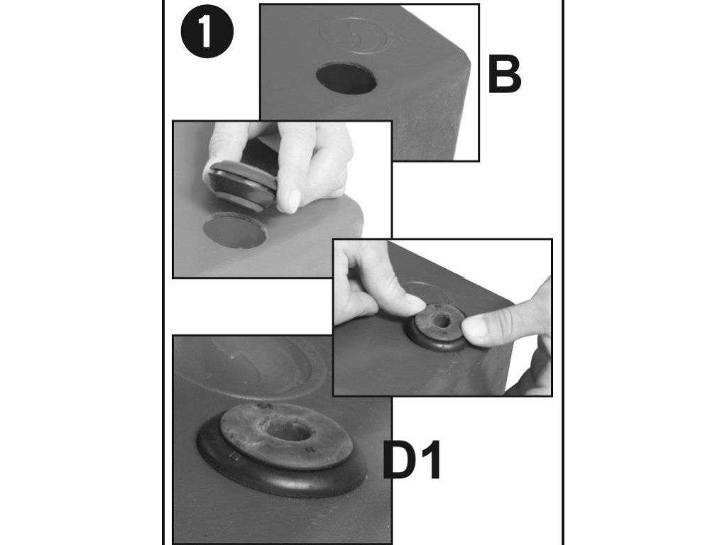 Jedná se o těsnění, které se vloží do otvoru rezervoáru. Do něj se vsune spojka spojka I,L, T nebo ventil zakončený hadičníkem (viz spojky) , na tuto spojku se připojí hadice.