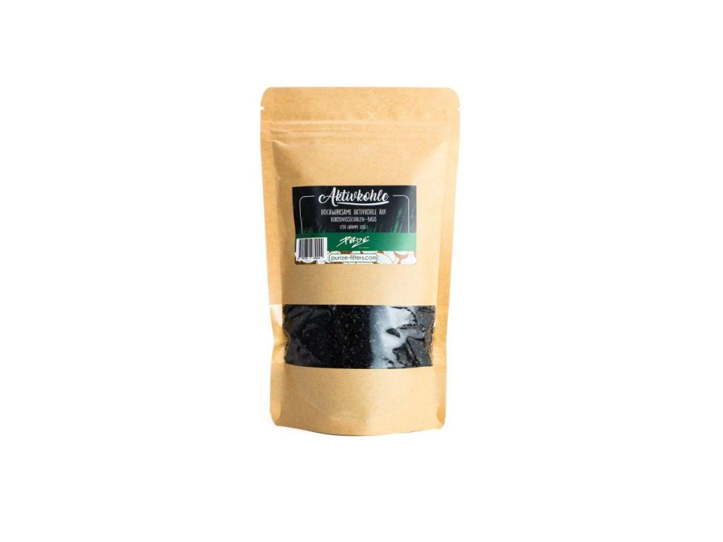 Aktivní uhlí PURIZE® (150 g, volně ložené v sáčku) na kokosovém základě. Pro plnění adaptérů s aktivním uhlím nebo podobných zařízení.
