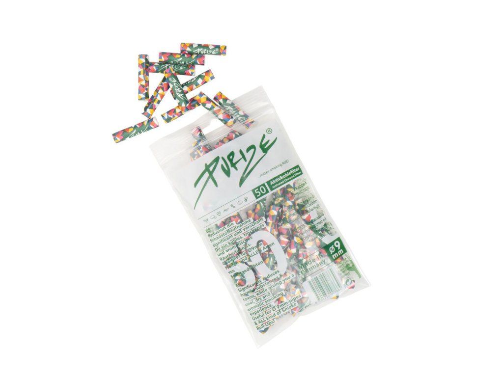 Purize Regular 9mm filtry barevné, PE sáček 50 ks. Filtry PURIZE s aktivním uhlím jsou vyrobeny z ekologicky šetrných surovin. Cigaretové filtry aktivně snižují množství škodlivin vzniklých hořením.