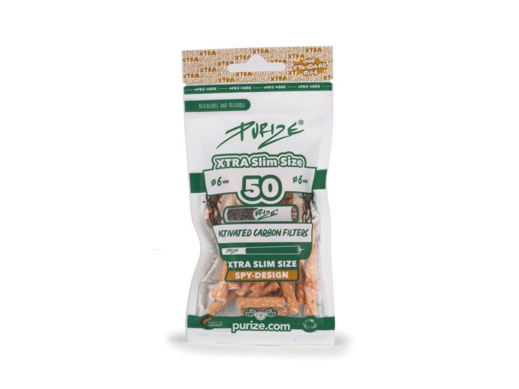 Purize XTRA Slim 6mm filtry Spy 50 ks, v boxu 20 balení. Filtry PURIZE s aktivním uhlím jsou vyrobeny z ekologicky šetrných surovin. Cigaretové filtry aktivně snižují množství škodlivin vzniklých hořením.