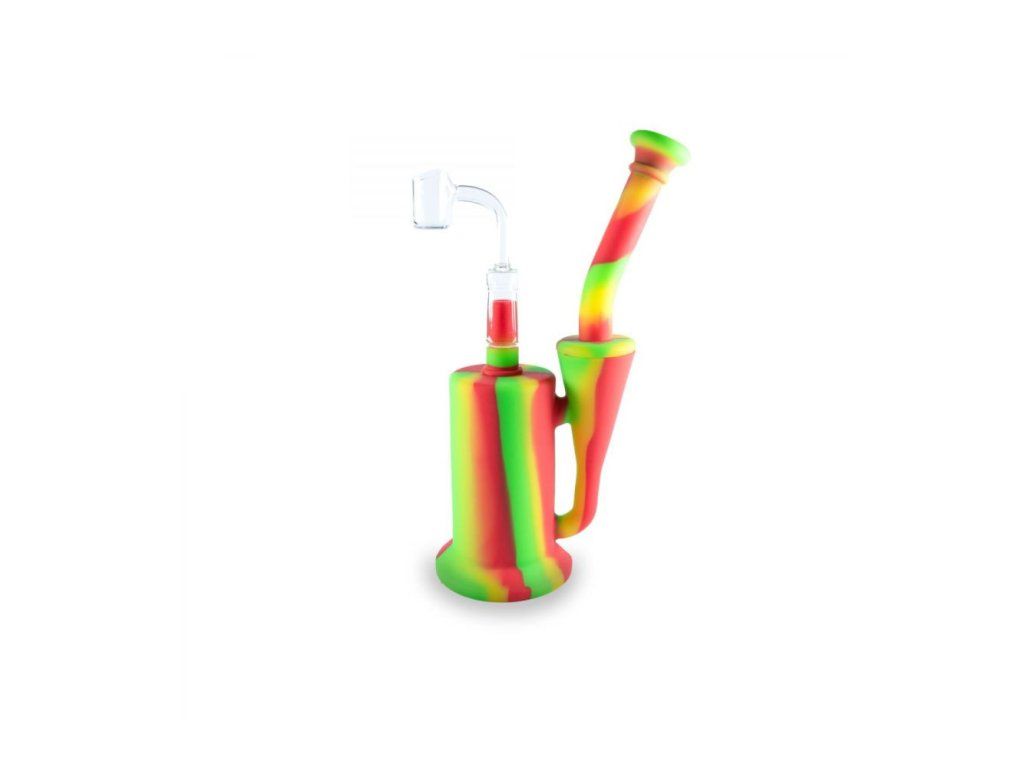 Silikonový bong s dvěma skleněnými kotlíky na bylinky i extrakty a výtažky, výška 20 cm.