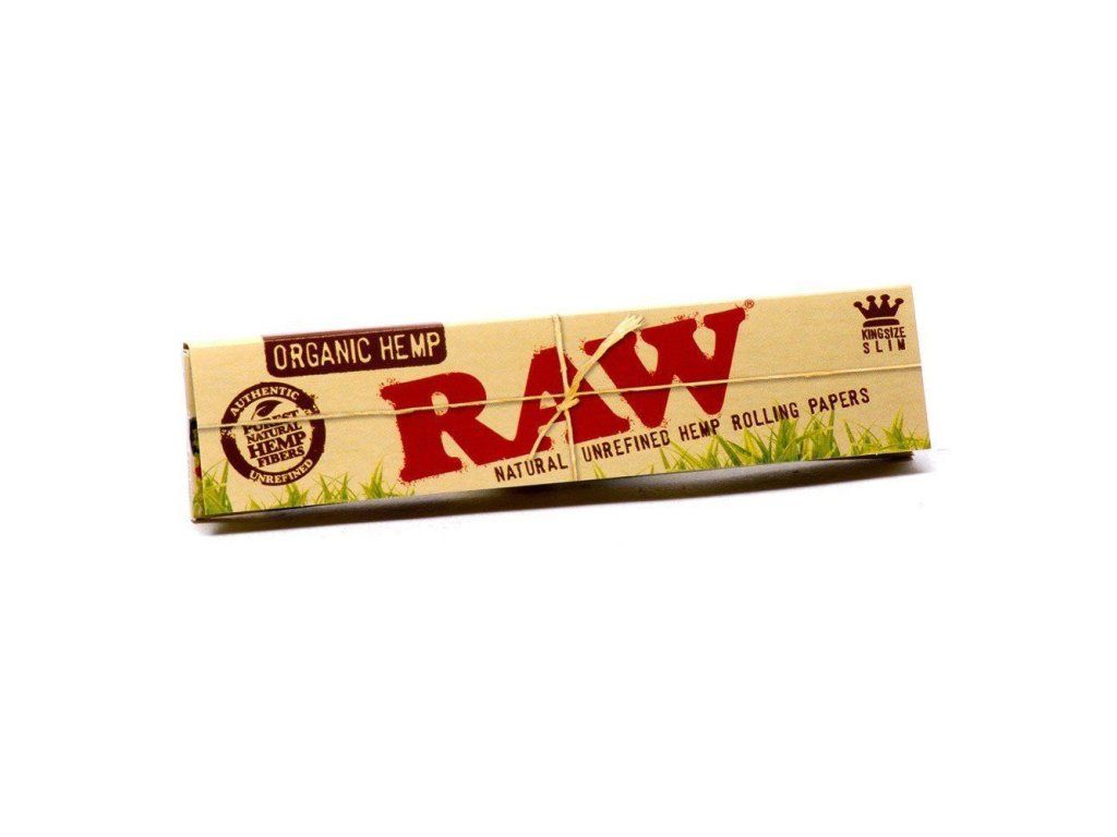 Přírodní dlouhé papírky RAW. Jedno balení RAW Organic Hemp King Size Slim obsahuje 32 nebělených, tenkých a pomalu hořících papírků, vyrobených z organického technického konopí.