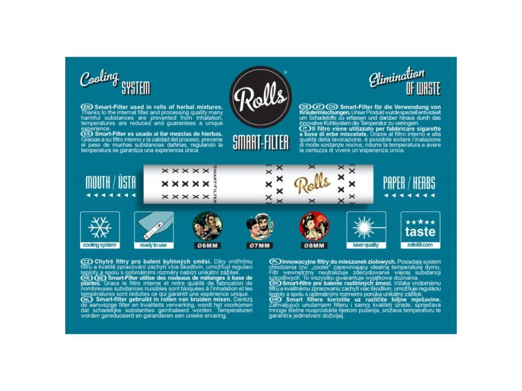 Chytré filtry Rolls® jsou speciálně navrženy tak, aby zabránili škrábání v krku, kašli, vdechování horkého kouře a škodlivých látek.