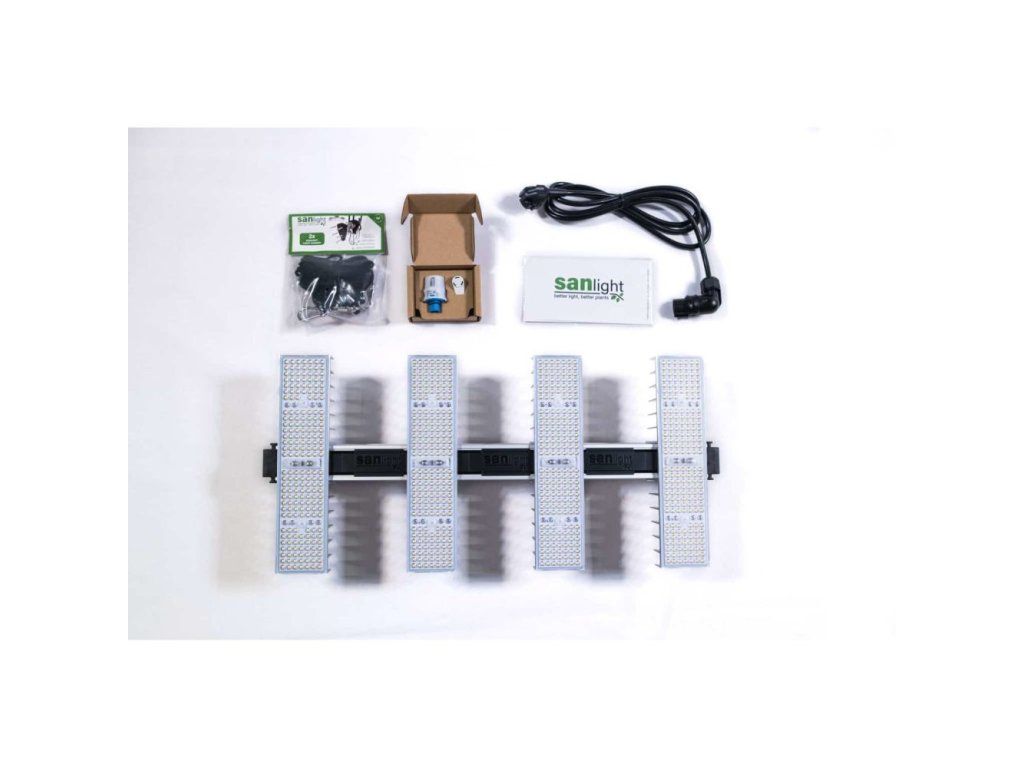 SANlight EVO LED Set pro 80x80 cm obsahuje 1 svítidlo EVO 4-80 265W (nová verze V1.5), 1x napájecí kabel, 1x rope ratchet, 1x manuální dimmer.