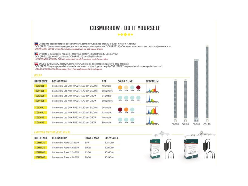 Secret Jardin Cosmorrow® GROW LED 20w PPE 2.7 - vylepšené květové spektrum. Vyvinuto do nízkých prostor s slabým odtahem vzduchu. PPF 54μmol/s.