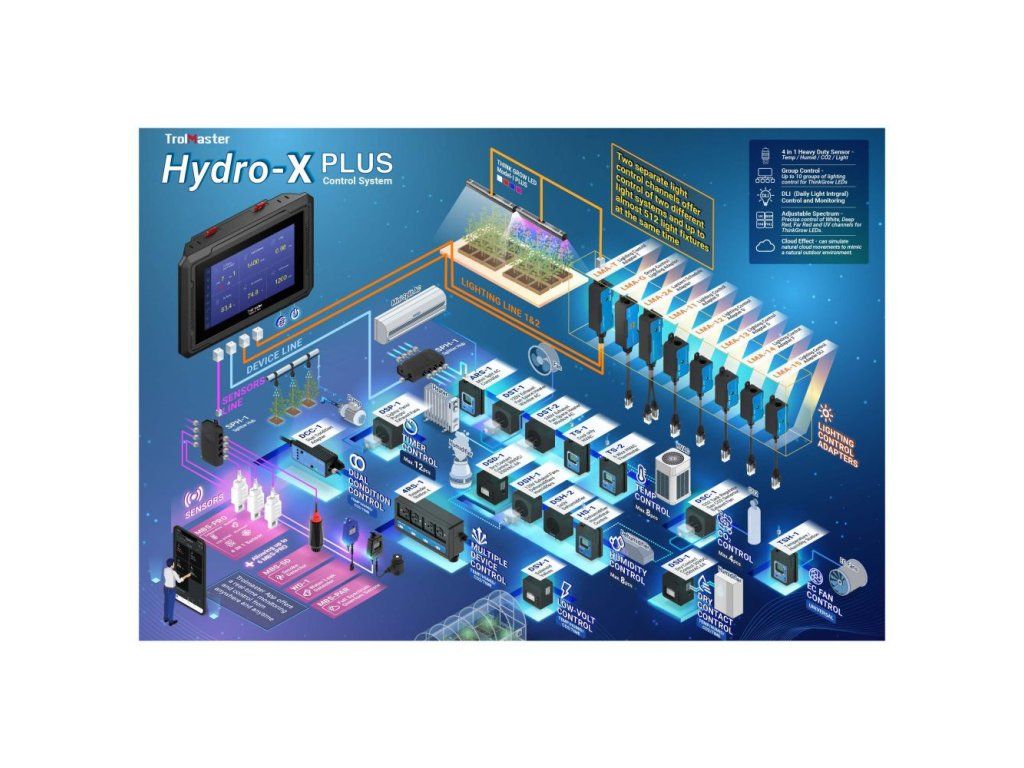 Systém Hydro-X Plus / HCS-3 je profesionální jednozónový systém řízení prostředí, který dokáže řídit celý pěstební prostor. Je vybaven 7" LED displejem s rozlišením 800 × 480 bodů a dokáže ovládat neomezený počet světel, 8 teplotních zařízení, 8 zařízení pro regulaci vlhkosti, 4 zařízení pro regulaci CO2 a 12 programovatelných časovačů (lze vytvořit až 50 časových plánů). Díky neuvěřitelné flexibilitě a rozšířené kapacitě produktu si nyní každý může snadno přizpůsobit vlastní systém řízení pěstírny pro dosažení maximálních výnosů. Mít k dispozici více řídicích modulů také poskytuje uživateli možnost vytvořit více "stupňů" regulace teploty a vlhkosti, což zajistí stabilnější prostředí.