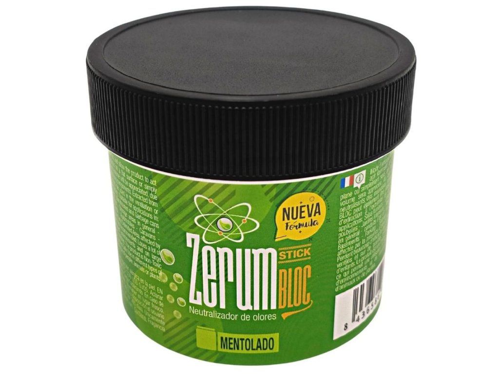 Univerzální, netoxický a účinný neutralizér zápachu Zerum BLOC Stick Máta, 170 g je pevný odstraňovač nepříjemných pachů. K dostání v balení 170 nebo 720 g a 4 vůních: lesní jahoda (Fresa silvestre), meloun a červené ovoce (Melón y frutos rojos), máta (Mentolado), neutrální (Neutro).