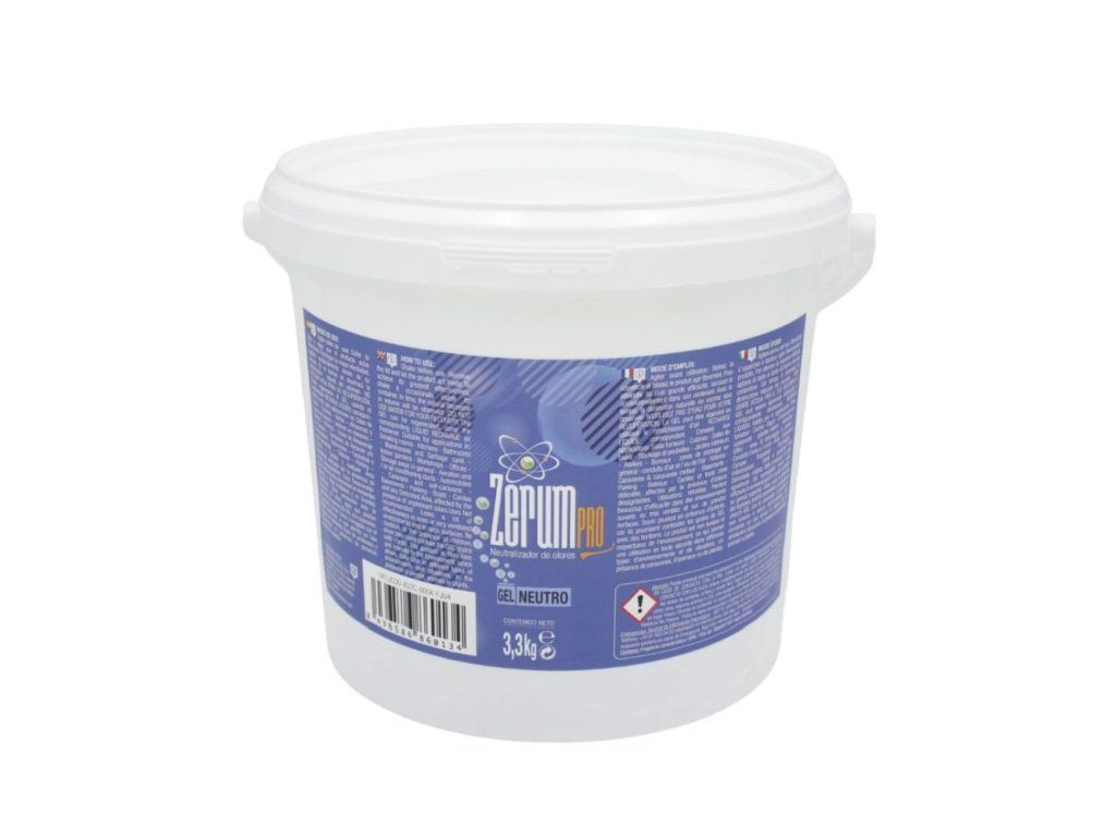Netoxický profesionální neutralizátor zápachu Zerum PRO Gel se velmi snadno používá. Obsahuje silnou látku pohlcující zápach. K dostání v balení po 400 g, 900 g, 3,3 kg, 5 kg, 12,5 kg a v 5 vůních: lesní jahoda (Fresa silvestre), meloun a červené ovoce (Melón y frutos rojos), máta (Mentolado), neutrální (Neutro), čistá (Limpio). Obecně slouží k neutralizaci pachů v jakémkoli prostoru. Eliminuje zápach z vlhkosti, kouření, auta, koupelny, tabáku, domácích zvířat, koček a psů atd. Zerum PRO Gel je ideální pro neutralizaci a osvěžení pachů z osobních automobilů, karavanů, nákladních automobilů, dodávek a dalších. Odstraňuje tak veškeré stopy nepříjemného zápachu. Použití můžete prodloužit použitím Zerum Pro Neutralizer Recarga, protože se jedná o aktivační kapalinu prostředku Zerum PRO Gel. K jeho obnově NEPOUŽÍVEJTE vodu, tím byste pouze obnovili jeho objem, ale nikoliv přítomnost neutralizačního prostředku a jeho účinnost by byla narušena. V otevřeném prostředí, na velkých plochách a/nebo v silně větraných prostorách může dojít ke ztrátě účinnosti. Rovněž je třeba dbát zvýšené opatrnosti v přítomnosti dětí, protože není vhodný k požití. Zerum Gel neutralizátor zápachu je netoxický a šetrný k životnímu prostředí. Uchovávejte mimo dosah dětí a domácích zvířat.
